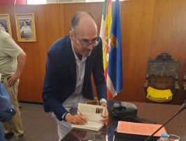 Serggio Valdés presentó su novela "Turno de noche" el pasado 28 de mayo, en la casa natal de Juan Ramón Jiménez de Moguer. El alcalde Gustavo Cuéllar acompañó al autor moguereño en la presentación de esta obra.