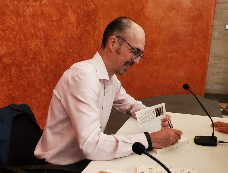 Sergio Valdés, presento su novela "Cuando cae la noche", en la Feria del Libro de Huelva, el 18 de octubre. En el stand de la Librería Welba.